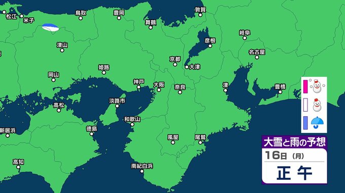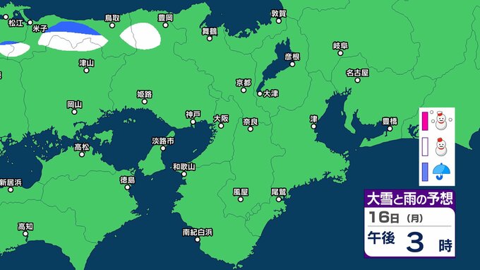 【関西の雪雨 どうなる?】大阪・京都・兵庫・滋賀・奈良・和歌山 16日(月)~19日(木)近畿地方 3時間ごとの雪雨シミュレーション【気象庁16日現在】 RSK山陽放送 2026年2月16日(月) 10:30 国内 16日(月) ▶16日(月)~19日(木)近畿地方3時間ごとの雪雨シミュレーション