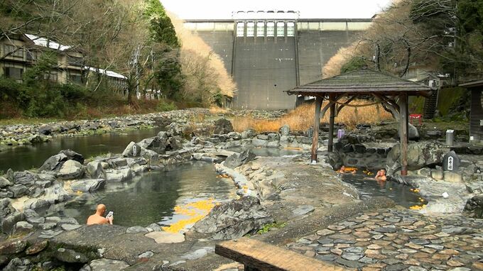 真庭市にある湯原温泉の露天風呂、「砂湯」で行われたゆず湯のサービスです。