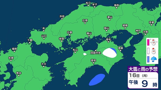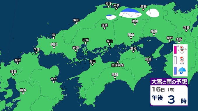 岡山県は寒気や湿った空気の影響でおおむね曇り、北部では雨や雪の降る所があるでしょう。