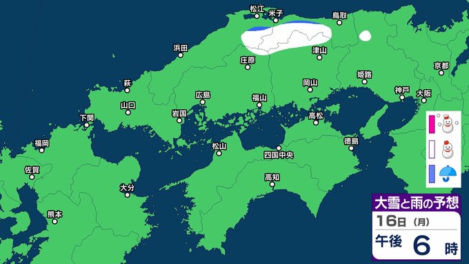 島根県は寒気や湿った空気の影響で曇り、東部では昼過ぎは雨が降るでしょう。