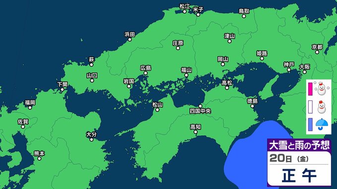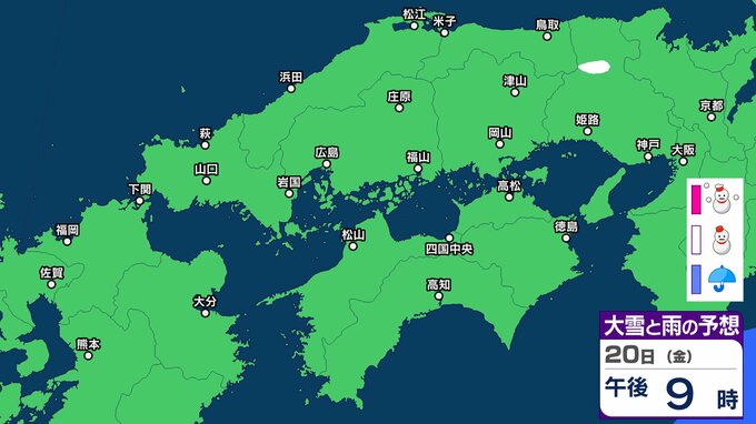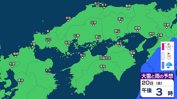 【中四国の雪 どうなる?】広島・岡山・山口・鳥取・島根・香川・愛媛・高知・徳島 16日(月)~21日(土)3時間ごとの雪雨シミュレーション【気象庁 16日現在】 RSK山陽放送 2026年2月16日(月) 11:14 国内 20日(金) 16日(月)~21日(土)中四国地方 3時間ごとの雪雨シミュレーション 16日(月)~21日(土)中四国地方 3時間ごとの雪雨シミュレーション