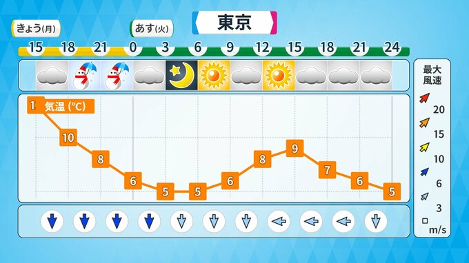 気温は1℃を下回ると、積雪になる所がでてきます。今回は比較的高めで推移する見込みなので、気象情報に書かれているように23区で雪が積もるのは「予想より気温が下がったら」「予想より降水が多くなったら」という条件付きになります。