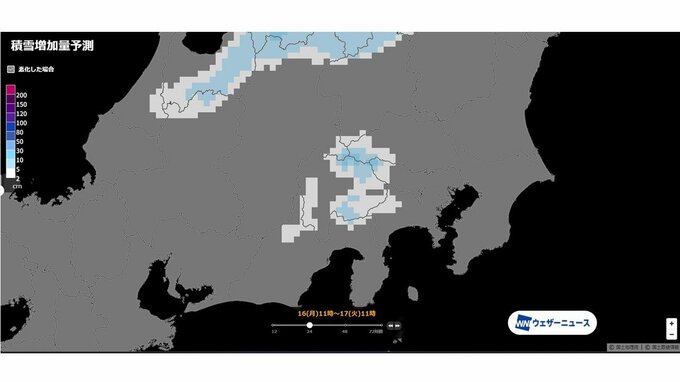 気象会社の「ウェザーニュース」の予測では、山地のみの積雪の予想です。