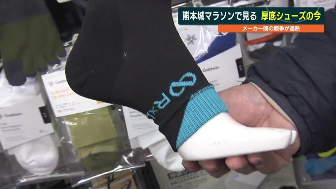 スポーツ用品店では厚底シューズ専用のソックスも販売されています。