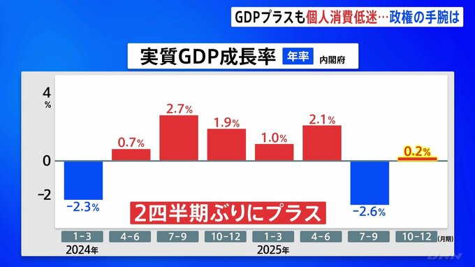 去年10月から12月までのGDP=国内総生産は年率換算で実質プラス0.2%と、2期ぶりのプラス成長となりましたが、力強さには欠けたままです。今回、辛うじてプラスに転換し、トランプ関税の影響が和らいでいることが…
