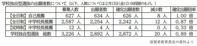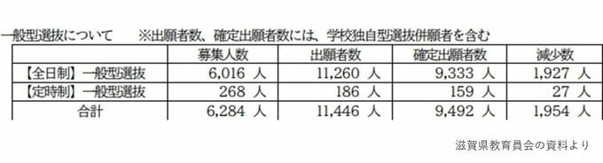 滋賀県教育委員会はこのほど、令和8年度(2026年度)の県立高校入試の出願受付を締め切り、出願者数を確定したと発表しました。