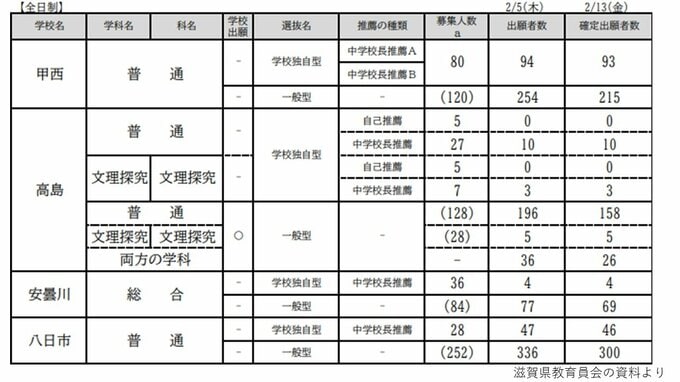 【滋賀県立高校入試2026】膳所、彦根東、石山など公立各校の出願者数は? 草津東(体育)などが人気集める 入試制度変更後の概況は【確定出願者数発表 全校掲載】 毎日放送 2026年2月16日(月) 18:45 国内 【出願状況一覧】高島・八日市南など