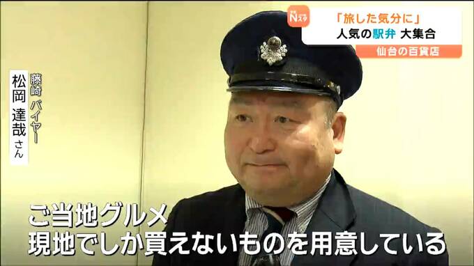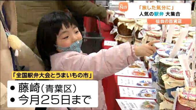 仙台市青葉区の藤崎で始まった「全国駅弁大会とうまいもの市」には、全国各地の約100種類の駅弁や話題のスイーツなどが並んでいます。