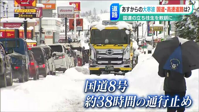 一方で国交省は、新潟県内の国道と管理する高速道路の12区間で予防的に通行止めを行う可能性があると発表しました。立ち往生が発生した国道8号や17号を始め、49号と7号などの12区間です。