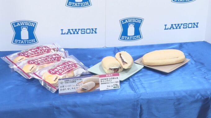 丸山知事が満面の笑みで頬張ったのは、来週火曜日から中四国地区のローソンおよそ1500店舗で販売される「ふわもちつぶあん&ホイップパン」です。