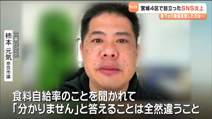 「(Q:柿本さんの拡散は、印象操作や誹謗中傷にはならないのか)あくまで彼女の政治家としての資質を判断する材料として示した。クリームパンを足を組んで食べるのと、政治活動を始めた人間が、自分で「食料自給率を上げたい」と言っておいて、食料自給率のことを聞かれて『分かりません』と答えることは、全然違うことだと思う」