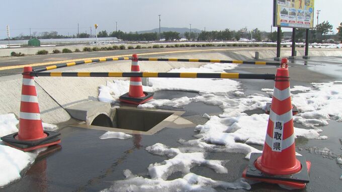 こうした事態を受けて県は、付近にある集水桝2か所と水路にカラーコーンを置いたり板を置いたりするなど応急的な対策を行いました。