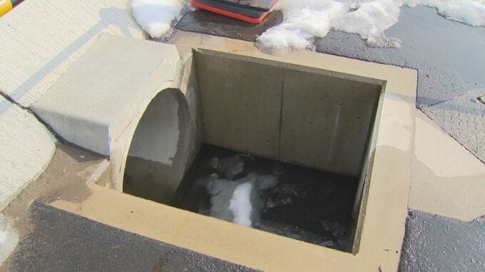 穴の正体は、雨水を集めて配管や側溝へ流すための集水桝でした。