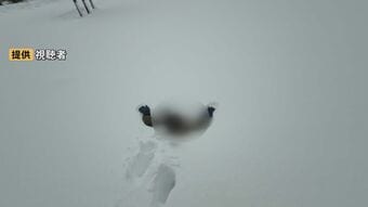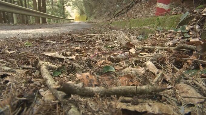 現場は幅3.8メートルほどで中央線のない峠を越える狭い道の左カーブで、車は左前バンパーが大破していて、警察が事故の詳しい原因を調べています。