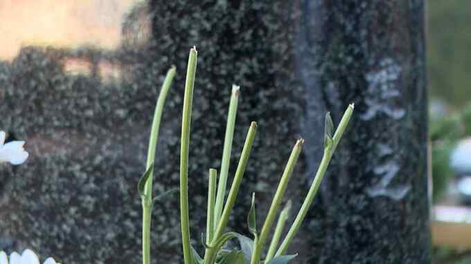 新宮霊園 真子太統括本部長「やっぱりこの辺を荒らしていますね。お墓に菊を供えますよね。菊の花を、花だけを食べるんですね。だから茎だけが残ってる状態」