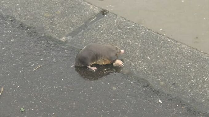 「畑が完全に冠水してしまったため、道路にモグラが避難してきています。どこに行ったらいいか分からないといった感じです」
