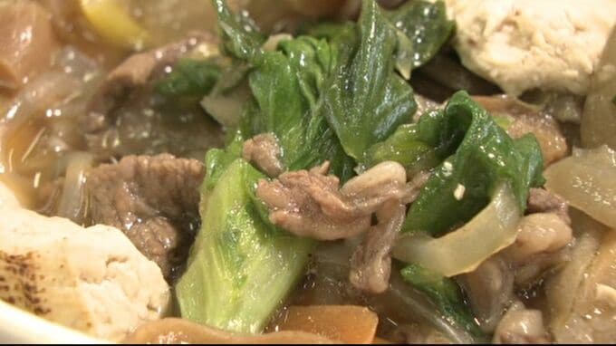 16日、子どもたちには、金沢春菊を使った「すき焼き風煮」が給食でふる舞われ、伝統の加賀野菜を美味しそうに味わっていました。