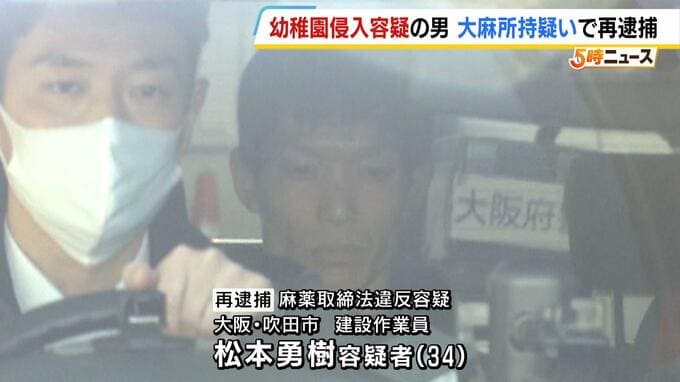 幼稚園に無断で侵入したとして逮捕された男が、大麻を所持していた疑いで再逮捕されました。 麻薬取締法違反の疑いで再逮捕されたのは、大阪府吹田市に住む建設作業員・松本勇樹容疑者(34)です。 警察により…