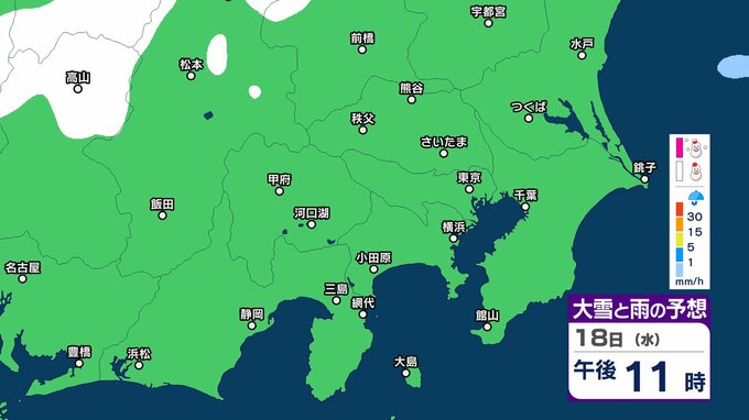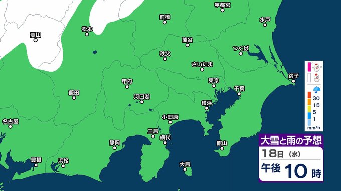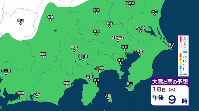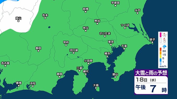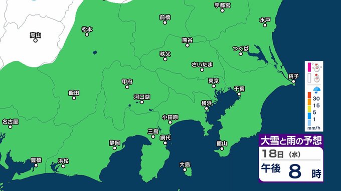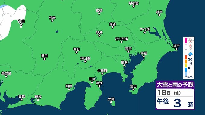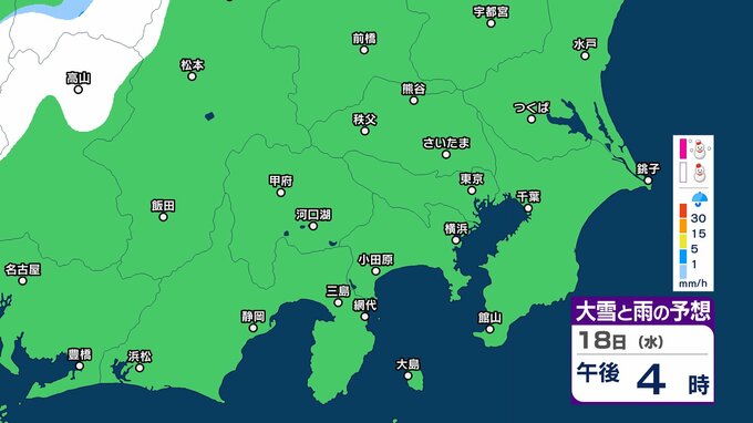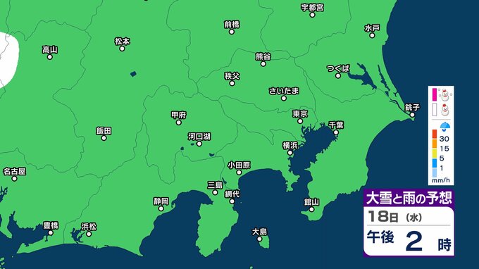 【また雪?予想】東京・栃木・群馬・埼玉・茨城・千葉・神奈川・長野・山梨 16日(月)~19日(木)1時間ごとの雪雨シミュレーション 神奈川県では1~5センチの降雪予想【気象庁/16日午後5時更新】 RSK山陽放送 2026年2月16日(月) 17:26 国内 18日(水)午後 16日(月)~19日(木)1時間ごとの雪と雨のシミュレーション 16日(月)~19日(木)1時間ごとの雪と雨のシミュレーション