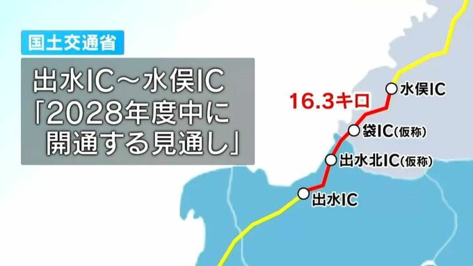国土交通省はきょう16日、出水と水俣の間の16.3キロについて、主要な橋などの完成のメドが立ったとして、2028年度中に開通する見通しとなったと発表しました。