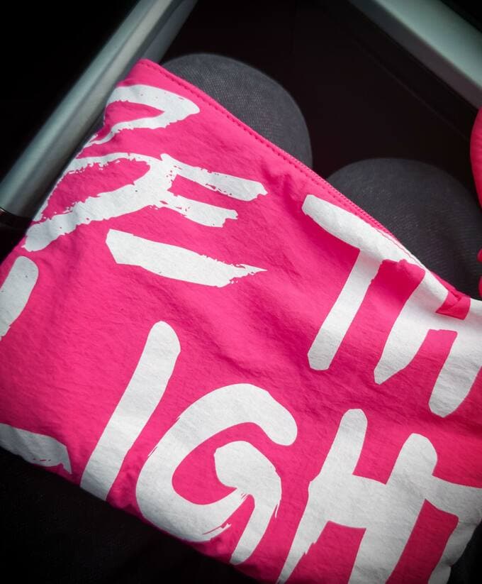 ポーチのほか、この日着用している「BE THE LIGHT」というピンクロゴが印象的なTシャツなども、氷川さんとコラボしたアイテム。ピンクが映える〝コラボアイテムコーデ〟でバッチリ決める氷川さんでした。