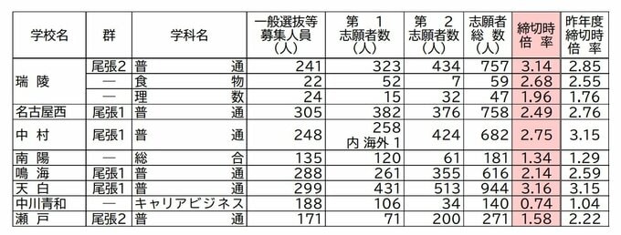 【愛知県公立高校入試2026】志願倍率 全日制課程・一般選抜など〈普通科〉旭丘1.51倍 明和1.74倍 一宮1.44倍 岡崎1.23倍 千種2.40倍 令和8年度の出願状況(全校掲載・一覧) CBCテレビ 2026年2月16日(月) 20:03 国内 Bグループ 千種、瑞陵、中村、旭野など