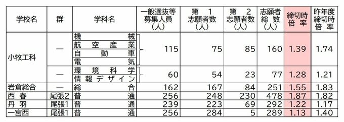 【愛知県公立高校入試2026】志願倍率 全日制課程・一般選抜など〈普通科〉旭丘1.51倍 明和1.74倍 一宮1.44倍 岡崎1.23倍 千種2.40倍 令和8年度の出願状況(全校掲載・一覧) 4時間前