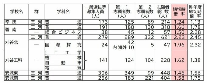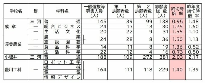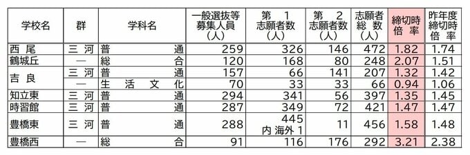 【愛知県公立高校入試2026】志願倍率 全日制課程・一般選抜など〈普通科〉旭丘1.51倍 明和1.74倍 一宮1.44倍 岡崎1.23倍 千種2.40倍 令和8年度の出願状況(全校掲載・一覧) CBCテレビ 2026年2月16日(月) 20:03 国内 Bグループ 豊橋西、刈谷北、小坂井など