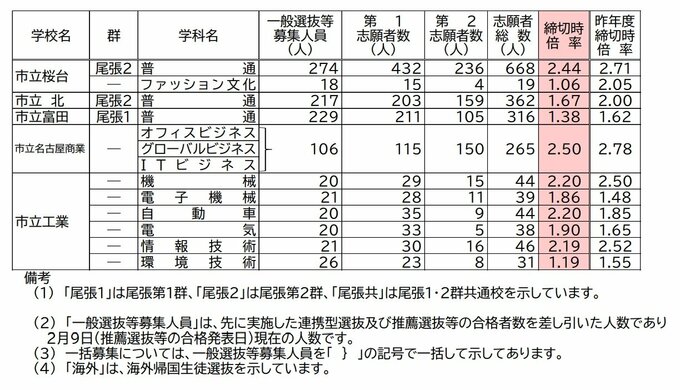 【愛知県公立高校入試2026】志願倍率 全日制課程・一般選抜など〈普通科〉旭丘1.51倍 明和1.74倍 一宮1.44倍 岡崎1.23倍 千種2.40倍 令和8年度の出願状況(全校掲載・一覧) CBCテレビ 2026年2月16日(月) 20:03 国内 Bグループ 菊里、桜台、北など