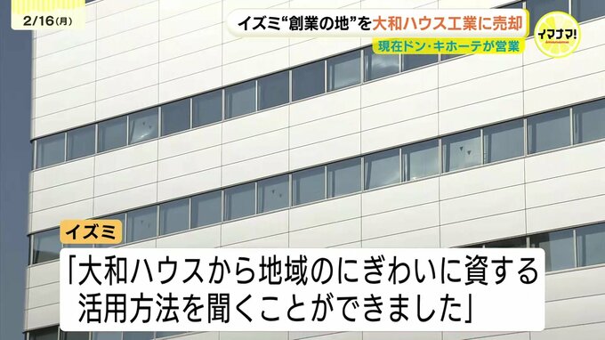 スーパー大手のイズミは、創業の地で、現在ドン・キホーテが営業している広島市中区の土地を大和ハウス工業に売却したと明らかにしました。