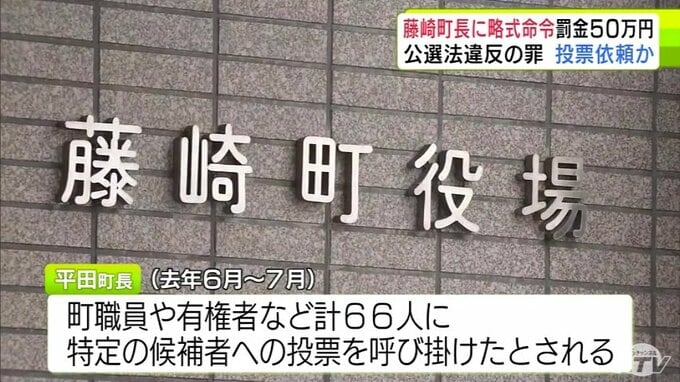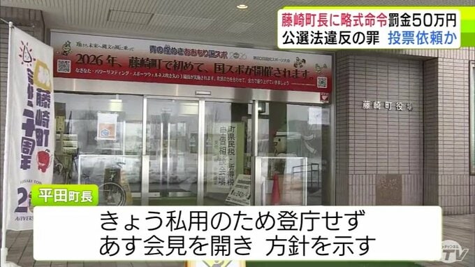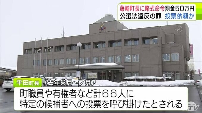 3. 青森県藤崎町・平田博幸 町長に公職選挙法違反の罪で罰金50万円の略式命令 明日17日に会見を開き今後の方針を示す予定