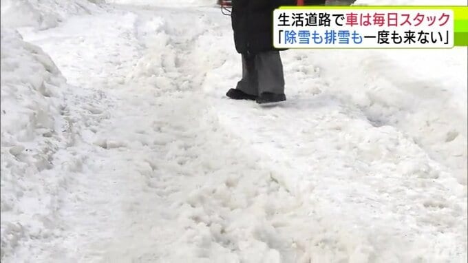子どもたちが通学路として使う小学校からほど近い道路ですら、除排雪が進んでいない場所もあります。