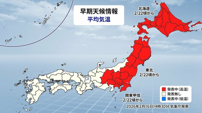 気象庁は16日、北海道、東北、関東甲信に「高温に関する早期天候情報」を発表しました。