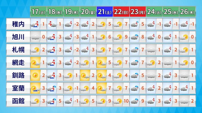 北海道地方の向こう2週間の気温は、寒気の影響を受けにくく暖かい空気
