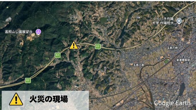 NEXCO西日本によりますと、トラックは、路肩から走行車線に一部はみ出した状態になっていて、山陽道下りは玉島~鴨方IC間が一時通行止めとなりましたが、午前8時4分に通行止めは解除、走行車線が規制されています。