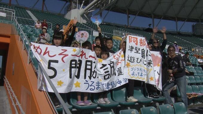 「津堅島で門脇選手がトレーニングをして島を盛り上げて頂いている。島の人たちみんなで応援している