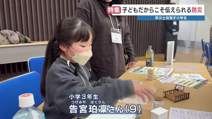 告宮珀凜さん(9)「歯磨きシートです。水が要らない歯磨きシート」
