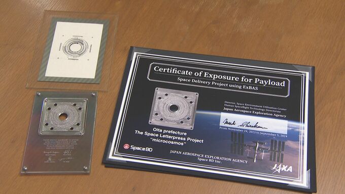 大分県内企業が共同開発し、国際宇宙ステーションに9か月間設置されていた印刷用の「活版」が17日、大分市役所で披露されました。大分市役所を訪れたのは、「王子全機」と「ニシジマ精機」それに「高山活版社」の3…