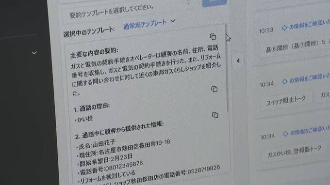 きょうは、報道陣に向けて応対の様子が公開されました。一件あたりの応対時間を約12%削減できるほか、AIによる要約システムにより通話後の事務作業の時間も約88%削減でき、対応ミスの抑制などが期待されています。