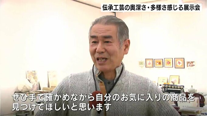ほかにも、土佐打刃物や土佐和紙など国や県指定の伝統工芸品や、比較的新しいジャンルのガラス工芸など、およそ300点の力作が並び、伝承工芸の奥深さや多様さなどが感じられます。