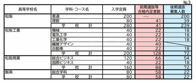 【三重県公立高校入試2026】前期選抜等の合格内定者数 後期選抜の募集人数 全日制課程では52校118学科・コースで実施 募集人員は6419人 令和8年度〈全校掲載・一覧〉 CBCテレビ 2026年2月17日(火) 13:21 国内 松阪・相可・宇治山田など