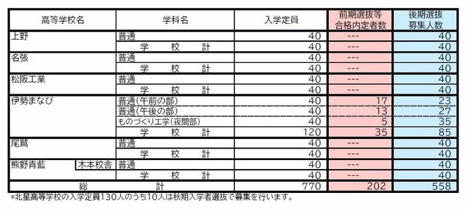 【三重県公立高校入試2026】前期選抜等の合格内定者数 後期選抜の募集人数 全日制課程では52校118学科・コースで実施 募集人員は6419人 令和8年度〈全校掲載・一覧〉 CBCテレビ 2026年2月17日(火) 13:21 国内 定時制・通信制課程