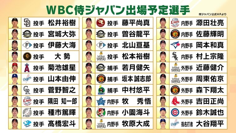 【WBC侍ジャパン出場予定選手】