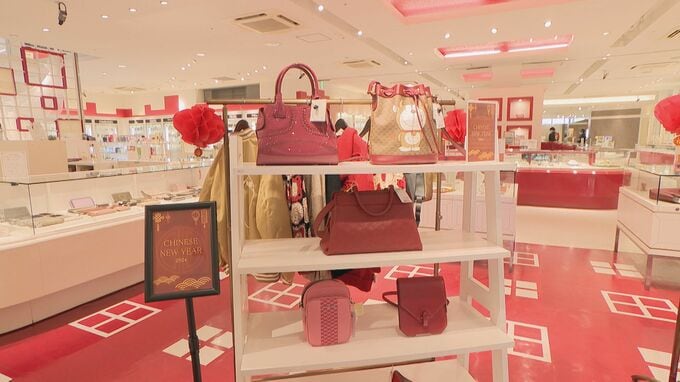 おととしの「春節」時期、コメ兵名古屋本店では、一階フロアの一角が“春節コーナー”になりました。中国では「富と幸福」のシンボルカラーとされる赤。展示のバックや靴、洋服など、すべてが赤に統一されていました。