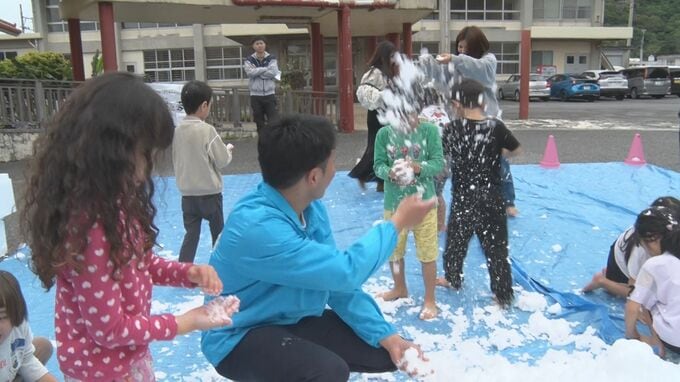 上地さんは子どもたちの喜ぶ笑顔を励みに今後もこのプロジェクトを続けていきたいと話しています。(16日・名護市 北部通信員 岸本幸平)