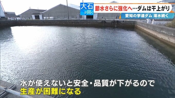 「通常はほぼ満タンだが、昼になって50センチくらい下がった。午後から水を使用するともっと減ってくる。水が使えないと安全・品質が下がるので、生産が困難になる」