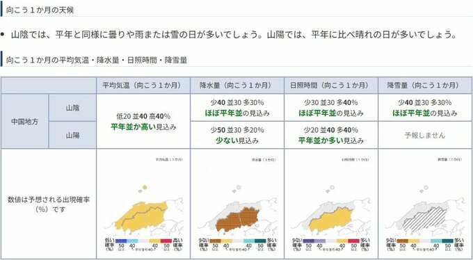 山陽では今後も1か月程度は低気圧の影響を受けにくく、降水量の少ない状態が続く見込みです。