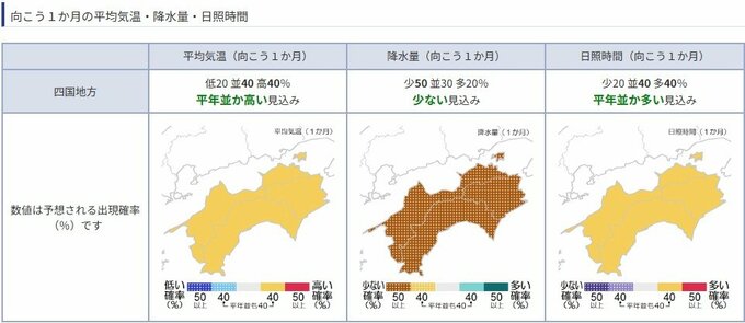 今後も1か月程度は低気圧の影響を受けにくく、降水量の少ない状態が続く見込みです。
