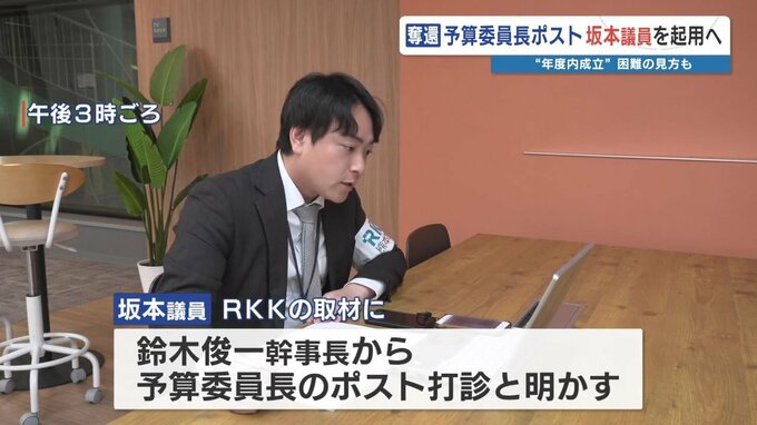 坂本議員は17日、RKK熊本放送の取材に応じ、鈴木俊一幹事長から予算委員長のポストを打診されたことを明らかにしました。