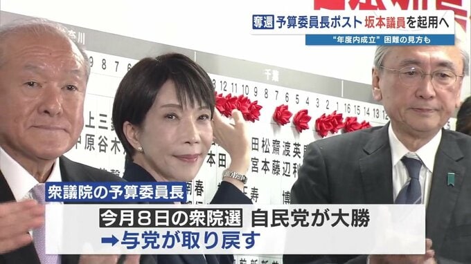 衆議院の予算委員長は、おととし10月の衆院選で与党が過半数割れしてから、野党第一党の立憲民主党がポストを握っていましたが、先の衆議院選挙で自民党が大勝したことを受け、与党が取り戻した形です。